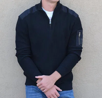 Mock Neck Polo Sweater With Pocket In Black