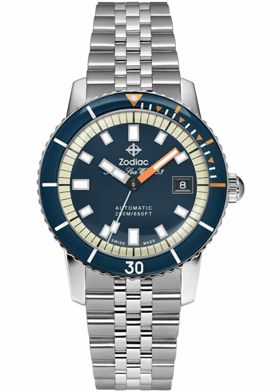 Pre-owned Super Sea Wolf Automatic Blue Dial Blue Bezel Steel Bracelet Watch Zo9211