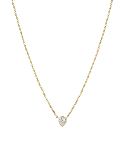 14k Yellow Gold Pear Diamond Bezel Pendant Necklace, 16-18