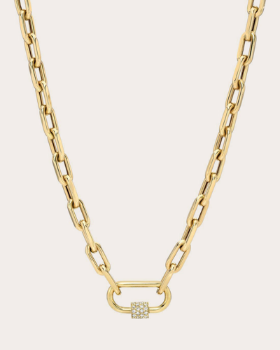 14k Yellow Gold Large Open Link Chain With Diamond Carabiner Necklace, 16