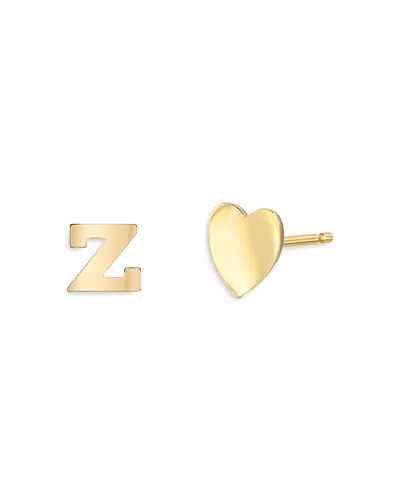 14k Yellow Gold Heart & Initial Stud Earrings In Z/gold