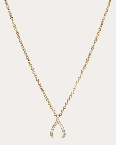 Women's Mini Wishbone 14k Gold Diamond Pendant Necklace