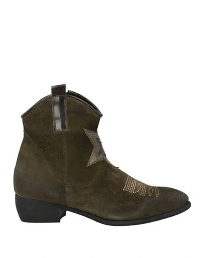Woman Ankle Boots Khaki Size 8 Textile Fibers In Beige