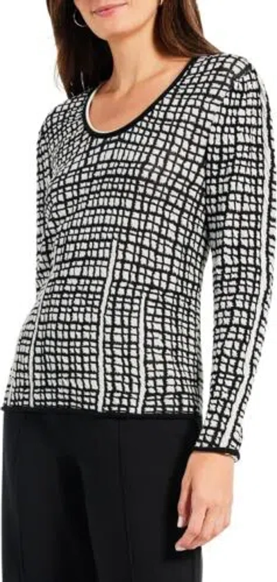 Pre-owned Nic+ Women's Checked Off Sweater In Black Multi