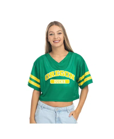 Women's Green Oregon Ducks V-neck Mesh Cropped T-shirt