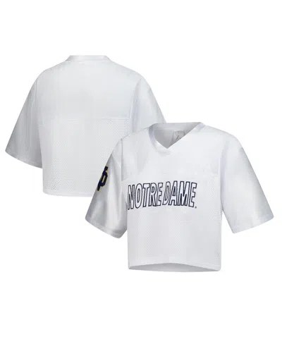 Women's White Notre Dame Fighting Irish Mesh Cropped V-neck T-shirt