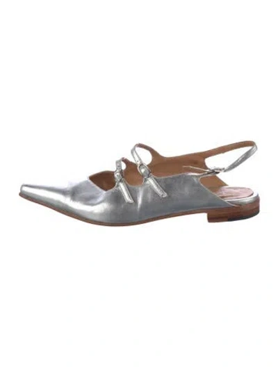 Pre-owned Leather Slingback Flats In Silver