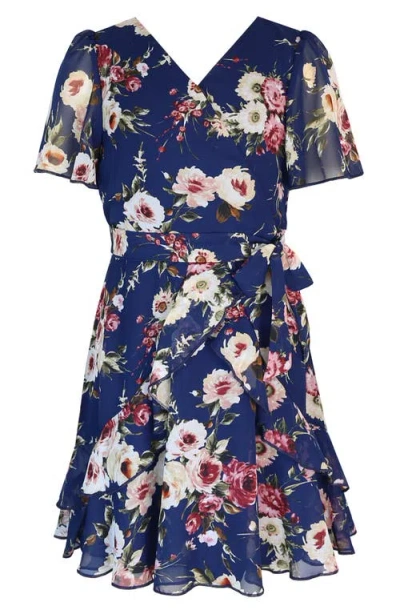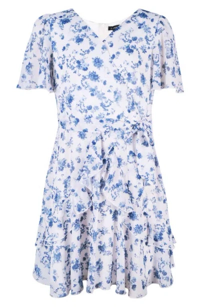 Kids' Flutter Sleeve Faux Wrap Party Dress In Multi
