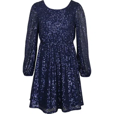 Kids' Long Sleeve Sequin Dress In Blue