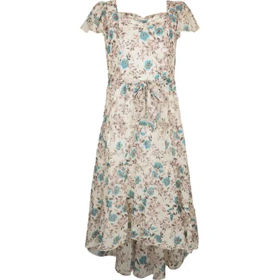 Kids' Floral Metallic Flutter Sleeve Dress In Neutral
