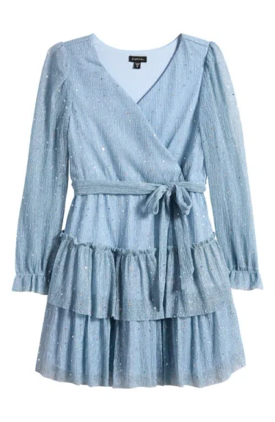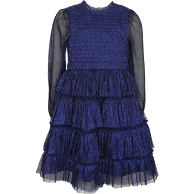 Kids' Metallic Plissé Long Sleeve Tiered Party Dress In Blue