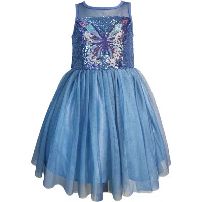 Kids' Sequin Butterfly Mesh Party Dress In Blue