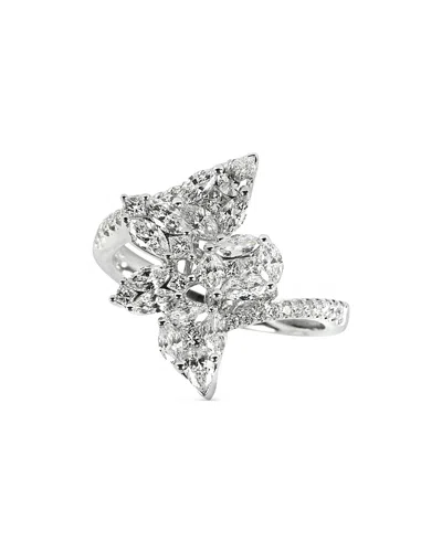 18k White Gold Mosaic Diamond Flower Cocktail Ring