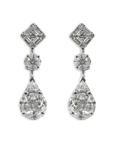 18k White Gold Groumette Diamond Drop Earrings In Silver