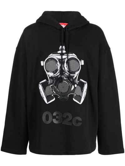graphic-print drop-shoulder hoodie from 032c featuring black, organic cotton, graphic print to the front, drawstring hood, drop shoulder, long sleeves and straight hem. Conscious: This product contains organic cotton where the cultivation and manufacturing process restricts the use of chemicals, eliminates pesticides or artificial fertilisers and incorporates methods that respect biodiversity, improve soil quality, and reduce water consumption..