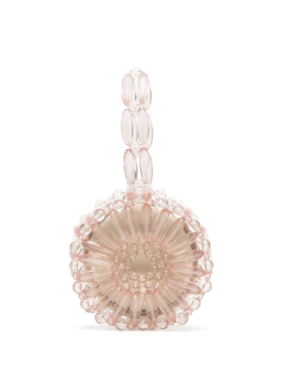 Tiny Arya mini bag from 0711 featuring peach pink, transparent design, bead embellishment, single top handle, open top, main compartment and internal logo tag.