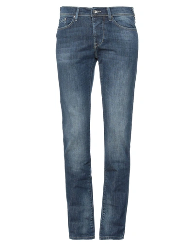 denim, brand logo, solid color, medium wash, mid rise, tapered leg, regular fit, button closing, multipockets , Color: Blue , Size: 31