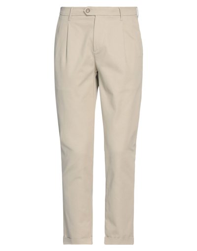 twill, brand logo, solid color, mid rise, tapered leg, slim-leg pants, button closing, zipper closure, multipockets, cuffed hems, stretch, chinos , Color: Beige , Size: 30
