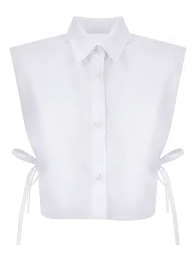 10 Corso Como's shirt bib crafted in white cotton poplin. It features a pointed collar, front button closure, side to-tie laces closure, fully open sides and straight hem.
