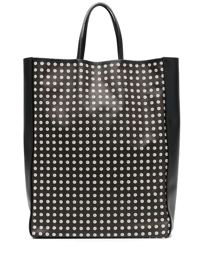 10 Corso Como's iconic tote bag crafted in black smooth leather and coated canvas with contrasting circles print. It features silver-tone hardware and double handle. Beige unlined interior with zip pocket.