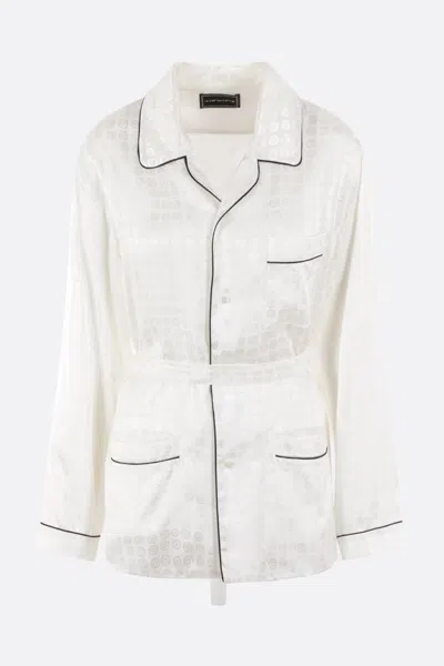 10 Corso Como's pijama shirt crafted in white viscose with all-over Signature Circle motif and contrastring trims. Featuring notched collar, button closure, long sleeves, front pockets and straight hem. The design is completed by the removable belt.