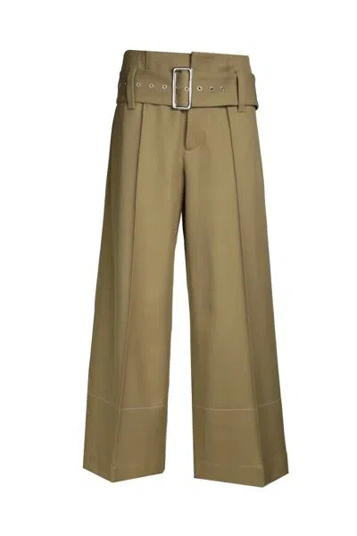 10 Corso Como's sophisticated wide-leg pants crafted in beige virgin wool twill. Featuring hidden button / zip closure, belt loops, matching belt with metal buckle, side invisible pockets, back button-through welt pocket and contrasting stitching at hem. Lined interior.