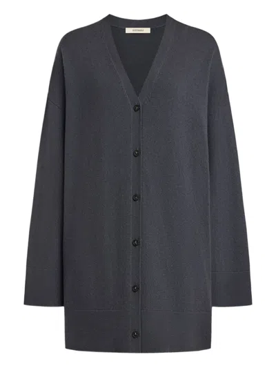 charcoal grey V-neckline long sleeves button closures relaxed fit dropped shoulders