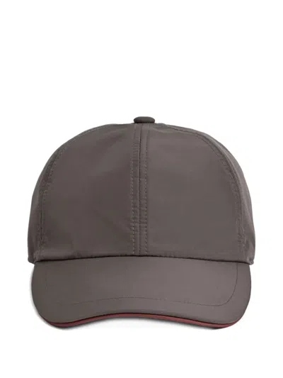 dark grey curved peak topstitching detail elasticated back six panel crown