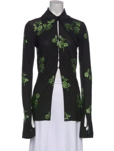 16ARLINGTON Button-Up Top Black & Green Lace Pattern Long Sleeve with Collar Fit: Tops by 16ARLINGTON typically fit true to size. | 16ARLINGTON Lace Pattern Long Sleeve Button-Up Top in Black/Green, Women's US 10 | L