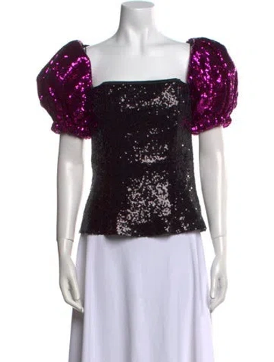 16ARLINGTON Top Black Patterned Sequin Embellishments Short Sleeve with Square Neckline Concealed Zip Closure at Back Fit: Tops by 16ARLINGTON typically fit true to size. | 16ARLINGTON Patterned Square Neckline Top in Black, Women's US 8 | M