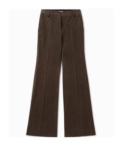 1989 STUDIO Flared Pinstripe Pattern Pants Striped In Brown