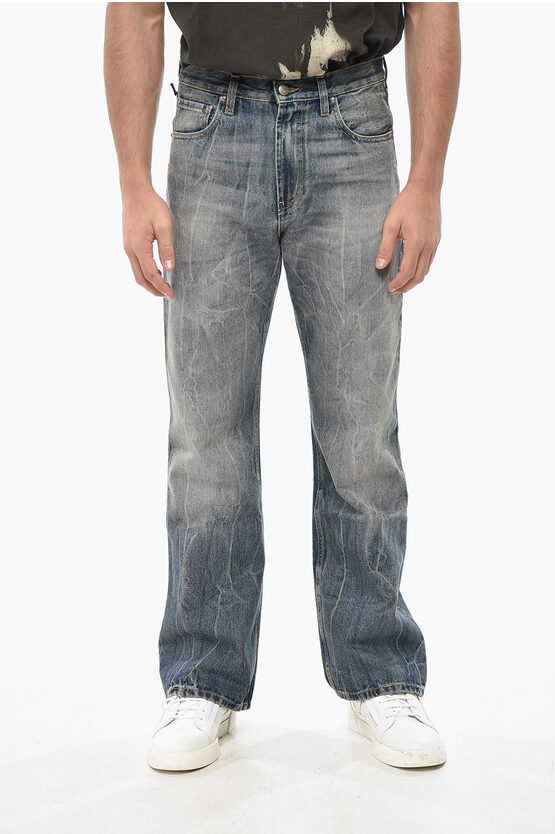 Whiskering Effect Straight Leg Old Setter Jeans 25cm In Blue