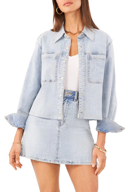 Light-wash denim with a hint of stretch makes for a comfortable fit in this snap-front jacket designed with oversized patch pockets at the chest. 22" length (size Medium) Front snap closure Spread collar Adjustable snap cuffs Front patch pockets 98% cotton, 2% spandex Machine wash, tumble dry Imported