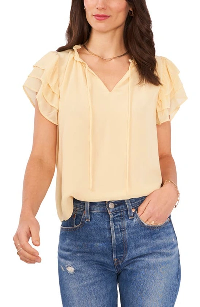 Flutter Sleeve Split Neck Chiffon Blouse In Sunlight