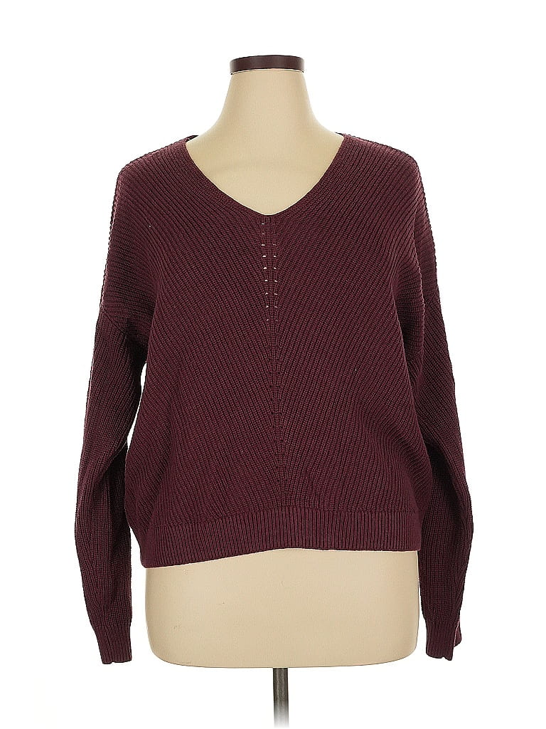 1.State Pullover Sweater, Size: X-Large. Item Details: Burgundy, V Neck, Long Sleeve, Studded, Women's Tops, Cotton/Acrylic