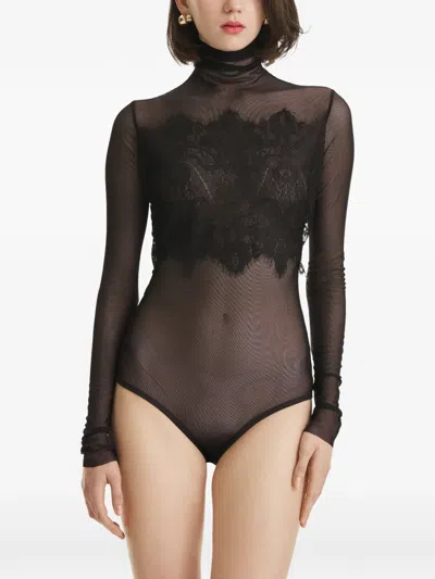 2310 STUDIO Lace-panel Mesh Bodysuit In Black