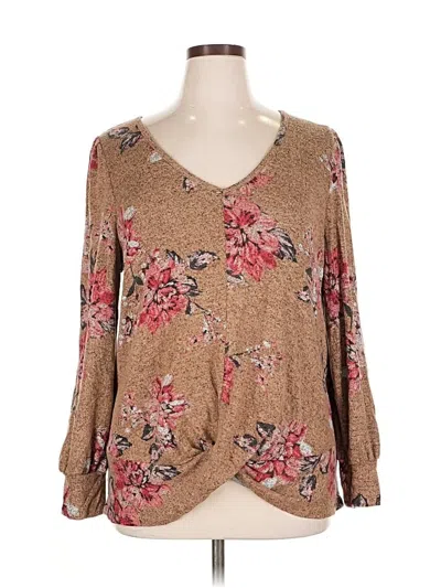 24/7 Maurices Pullover Sweater, Size: 0X. Item Details: Brown, Floral Pattern, Plunge Neckline, 3/4 Sleeve, Women's Tops, Rayon/Polyester/Spandex