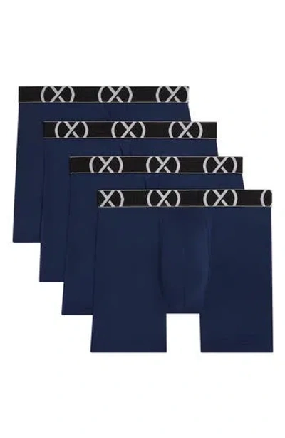 The 2(X)IST (X) 4pk Boxer Brief is a must-have addition to any man's underwear collection. These boxer briefs from the 2(X)IST (X) Range are designed with moisture control in mind, featuring breathable modal and quick-dry fabric with a moisture-wicking finish. The confident fit is perfect for wearing under fitted trousers, with no show leg binding and a smooth elastic waistband adorned with the signature (X) embossed silver logo. The original contour pouch provides support and enhancement, while the super soft fabric reduces skin irritation. These boxer briefs are tagless for added comfort and are made of 95% modal and 5% spandex for the perfect blend of durability and stretch. Machine washable and imported, these boxer briefs are available in classic black. Upgrade your underwear game with the 2(X)IST (X) 4pk Boxer Brief today.