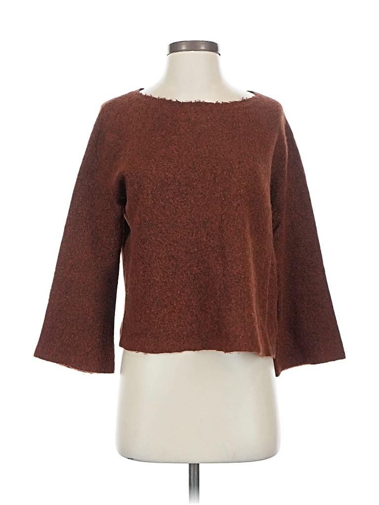 3.1 Phillip Lim Pullover Sweater, Size: X-Small. Item Details: Brown, Solid Pattern, Square Neckline, 3/4 Sleeves, Frayed Edges, Women's Tops, Polyamide/Wool/Yak, True To Size