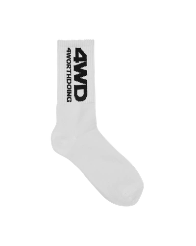 66% Cotton, 27% Nylon, 5% Polyester, 2% Spandex Elastic Ribbed Cuffs Knitted Branding Made in the USA Style Code: 4WDLOGOSOCKS WHITE
