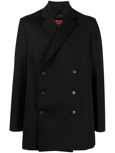 Double-breasted coat by 424 in black, characterized by double-breasted button closure, long sleeves.*Import tax/duty will be calculated at checkout (If applicable)