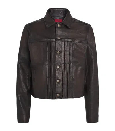 424 Leather Trucker Jacket In Black