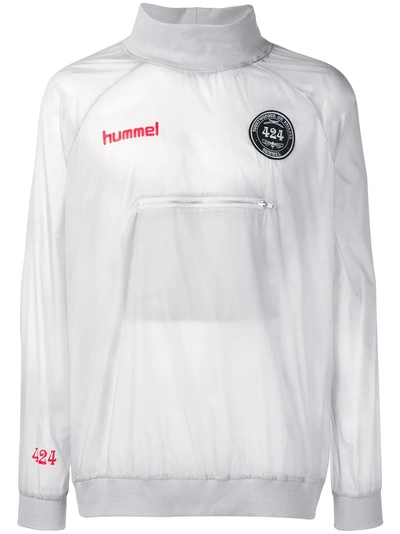 Grey Spray jacket from 424 featuring a funnel neck, a front logo patch, long sleeves and a front zip pocket.