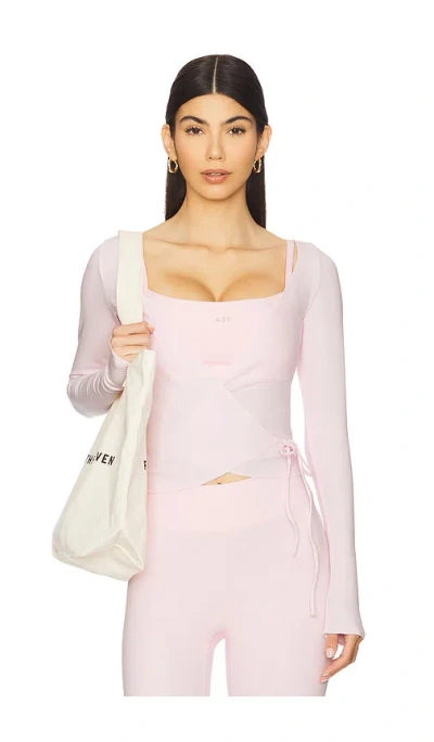437 The Studio Wrap in Pink. - size S (also in XS) 437 The Studio Wrap in Pink. - size S (also in XS) 90% tencel 10% spandex. Machine wash. Wrap around tie closure. Midweight ribbed knit fabric. Item not sold as a set. 437R-WK2. LOTO1303.