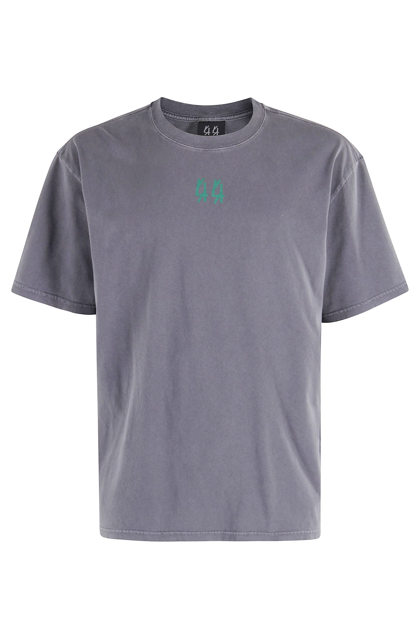 T-shirt - 44 label group - Grey color - Crew neck - Short sleeves - Green logo print on front - Green logo print on back