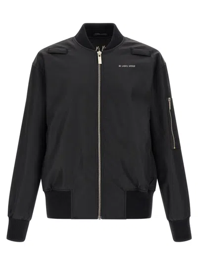 'Outer' bomber jacket in satin-effect technical fabric with stretch ribbed knit details, logo print and front zip closure, back reflective print, high neck, pockets, long sleeves with cuffs and dropped shoulder, and band on the hem.. Colour. : Black. Composition. : 100% polyamide. Country Of Manufacture. : Portugal. Dimension. : Comfort fit. MPN. : B0030657FA487099. .