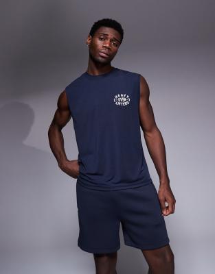 Quick Dry Oversized Training Tank With Back Graphic In Navy