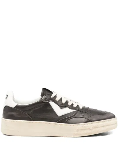 brown logo detail perforated detailing front lace-up fastening flat rubber sole round toe
