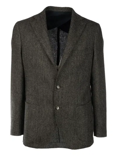 brown herringbone pattern button fastening patch pockets notched lapel long sleeves
