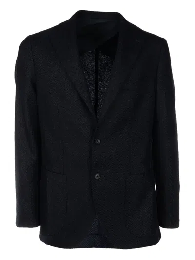 4FF Herringbone Notched Blazer In Blue